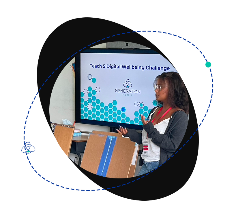 Use the presentation created by Generation Remix youth leaders to teach younger peers about digital wellbeing and challenge them to teach 5 other people:
